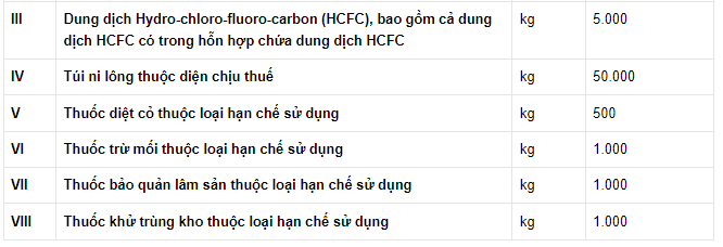 Bên cạnh các mặt hàng tăng thuế, các loại thuốc thuộc loại hạn chế sử dụng vẫn giữ mức thuế như trước đây, cụ thể như: thuốc trừ mối, thuốc bảo quản lâm sản, thuốc khử trùng kho là 1.000 đồng/kg; thuốc diệt cỏ là 500 đồng/kg.