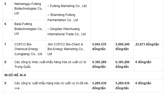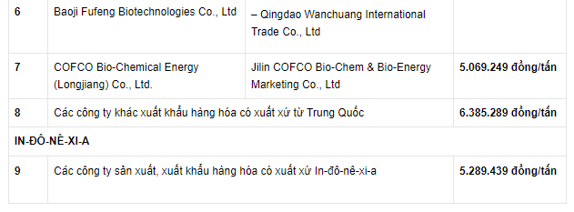 – Trường hợp 2: Nếu tên công ty xuất khẩu (dựa trên hợp đồng mua bán hàng hóa hoặc hóa đơn thương mại) không trùng với tên của công ty sản xuất, xuất khẩu tại Cột 1 hoặc các công ty thương mại liên quan tương ứng theo hàng ngang tại Cột 2 Mục 3 của Thông báo này thì nộp mức thuế chống bán phá giá chính thức là 6.385.289 đồng/tấn.