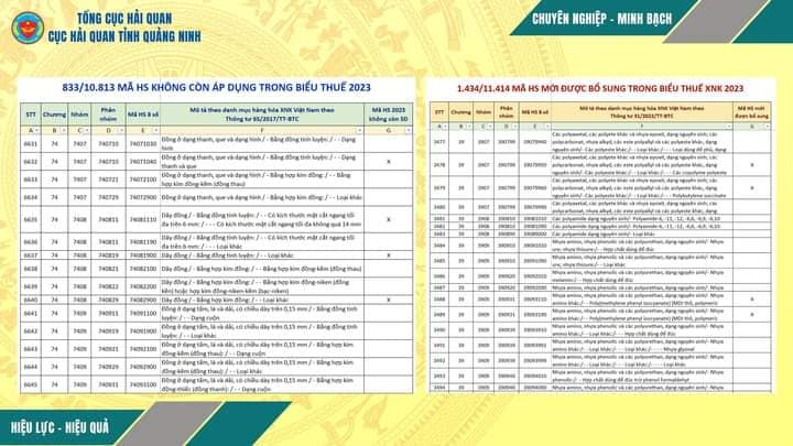 + Biểu thuế XNK thông thường, NK ưu đãi được cập nhật theo hướng dẫn của Tổng cục Hải quan tại Công văn số 5731/TCHQ-TXNK ngày 29/12/2022 (HIỆN TẠI VẪN ĐANG CHỜ CÓ NGHỊ ĐỊNH/QUYẾT ĐỊNH MỚI CỦA CHÍNH PHỦ & THỦ TƯỚNG).