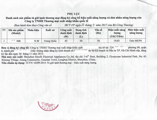 - Giấy đăng ký công bố dán nhãn năng lượng