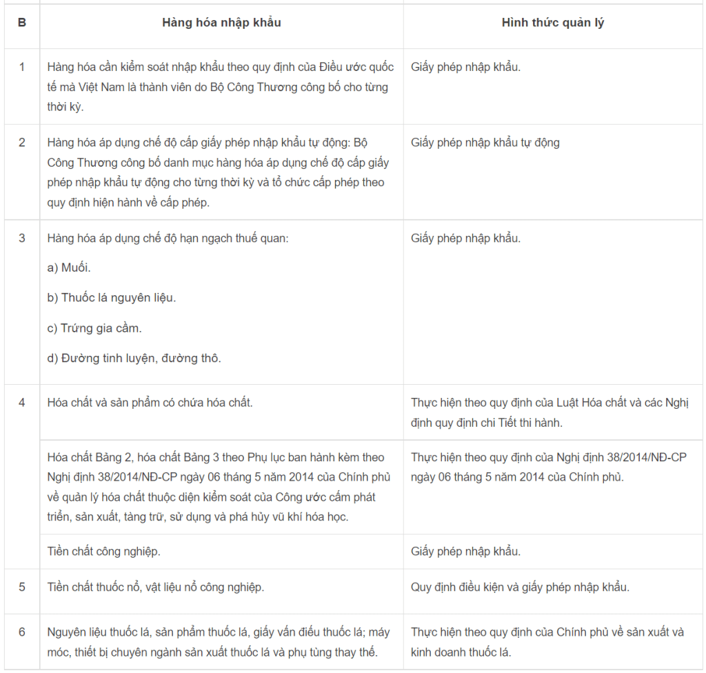 Chi tiết danh mục hàng hóa xuất nhập khẩu theo giấy phép (Phụ lục III, Nghị định số 69/2018/NĐ-CP ngày 15 tháng 5 năm 2018 của Chính phủ)