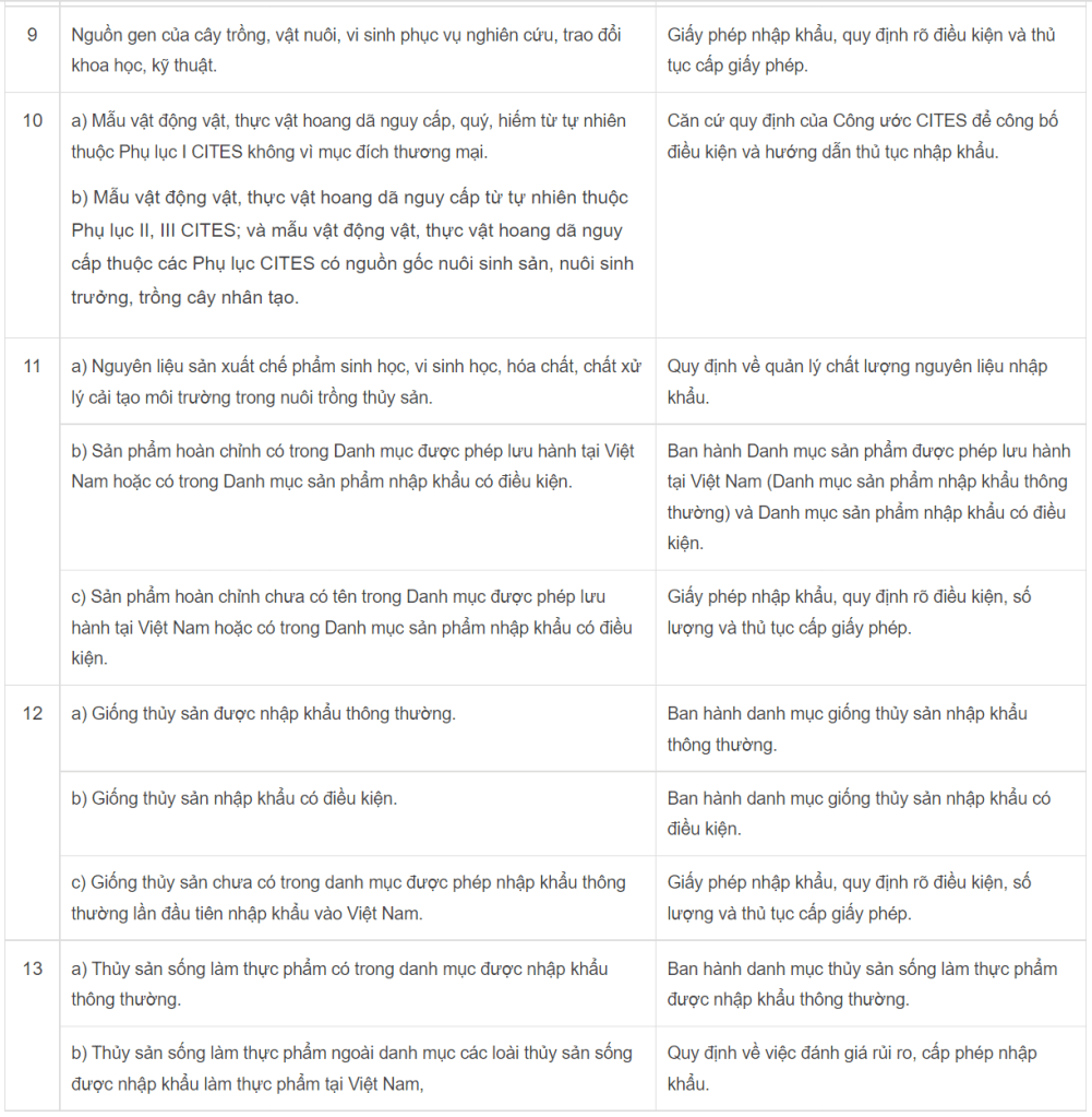III. DANH MỤC HÀNG HÓA XUẤT KHẨU, NHẬP KHẨU THEO GIẤY PHÉP, ĐIỀU KIỆN THUỘC PHẠM VI QUẢN LÝ CỦA BỘ NÔNG NGHIỆP VÀ PHÁT TRIỂN NÔNG THÔN