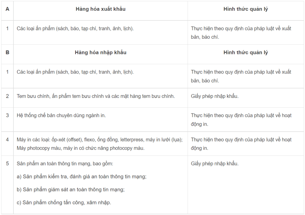 V. DANH MỤC HÀNG HÓA XUẤT KHẨU, NHẬP KHẨU THEO GIẤY PHÉP, ĐIỀU KIỆN THUỘC PHẠM VI QUẢN LÝ CỦA BỘ THÔNG TIN VÀ TRUYỀN THÔNG