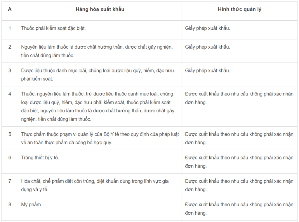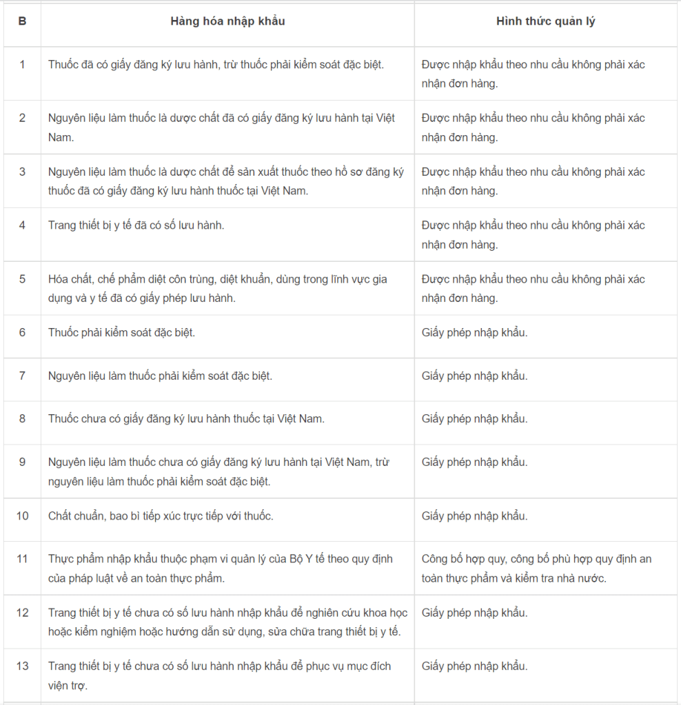 VII. DANH MỤC HÀNG HÓA XUẤT KHẨU, NHẬP KHẨU THEO GIẤY PHÉP, ĐIỀU KIỆN THUỘC PHẠM VI QUẢN LÝ CỦA BỘ Y TẾ