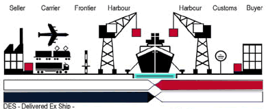 Điều kiện DES (viết tắt của thuật ngữ tiếng Anh “Delivered Ex Ship” dịch ra tiếng Việt là “Giao tại tàu”) có nghĩa là người bán giao hàng hoá được đặt dưới quyền định đoạt của người mua trên boong tàu chưa làm thủ tục thông quan nhập khẩu ở cảng đến quy định.