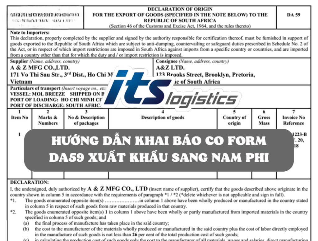 Hướng dẫn khai báo CO form DA59 xuất khẩu sang Nam Phi.
