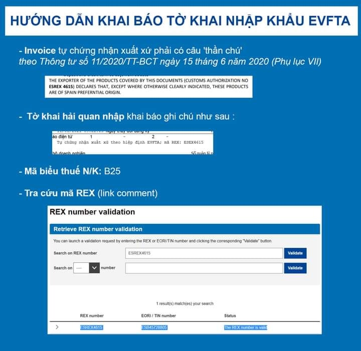 Hải quan Việt Nam có thể kiểm tra tính hợp lệ của mã số này trên link: https://ec.europa.eu/taxation_customs/dds2/eos/rex_validation.jsp?Number=DEREX26000128&Type=REX&Lang=en&Expand=true