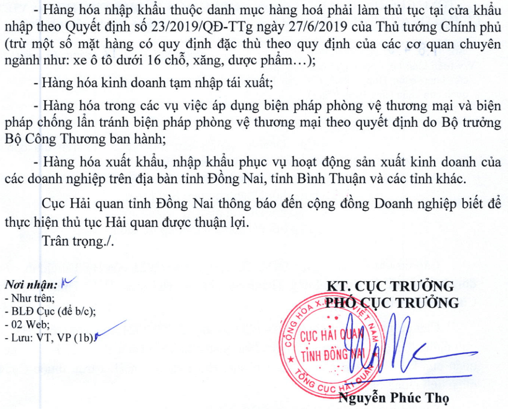 Hướng dẫn khai Hải quan VNACCS tại Cảng Đồng nai (được chuyển từ Đội nghiệp vụ Hải quan cảng Đồng nai thuộc CCHQ Biên Hòa sang Chi cục Hải quan cửa khẩu cảng Đồng Nai quản lý từ 15/10/2021).
