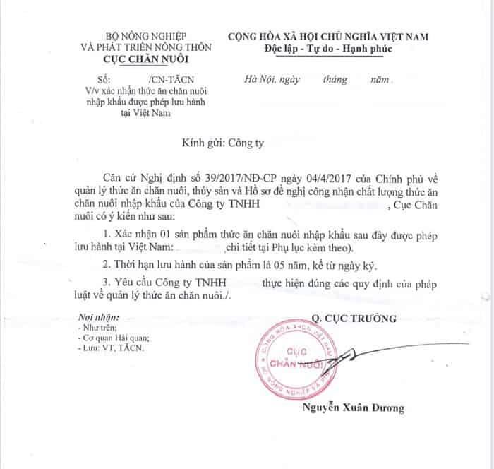 Ngoài ra, doanh nghiệp có thể tham khảo danh mục thức ăn chăn nuôi được phép nhập khẩu ở thông tư 15/2018/TT-BNNPTNT tại mục số 17 và 18.
