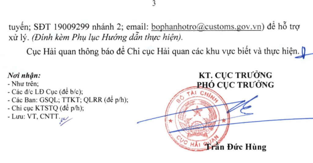 Cục Hải quan Thông báo tạm dừng tiếp nhận khai hải quan của Cục Hải quan được gửi đến các đơn vị: Kho bạc Nhà nước, Cục Thuế, Cục Công nghệ thông tin (Bộ Tài chính); các ngân hàng thương mại; Liên đoàn Thương mại và Công nghiệp Việt Nam (VCCI).