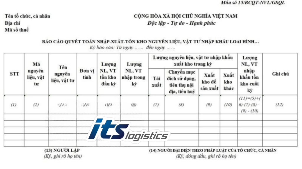 3. Mẫu 15b/BCQT-NLVTNN/GSQL – Mẫu báo cáo quyết toán hải quan