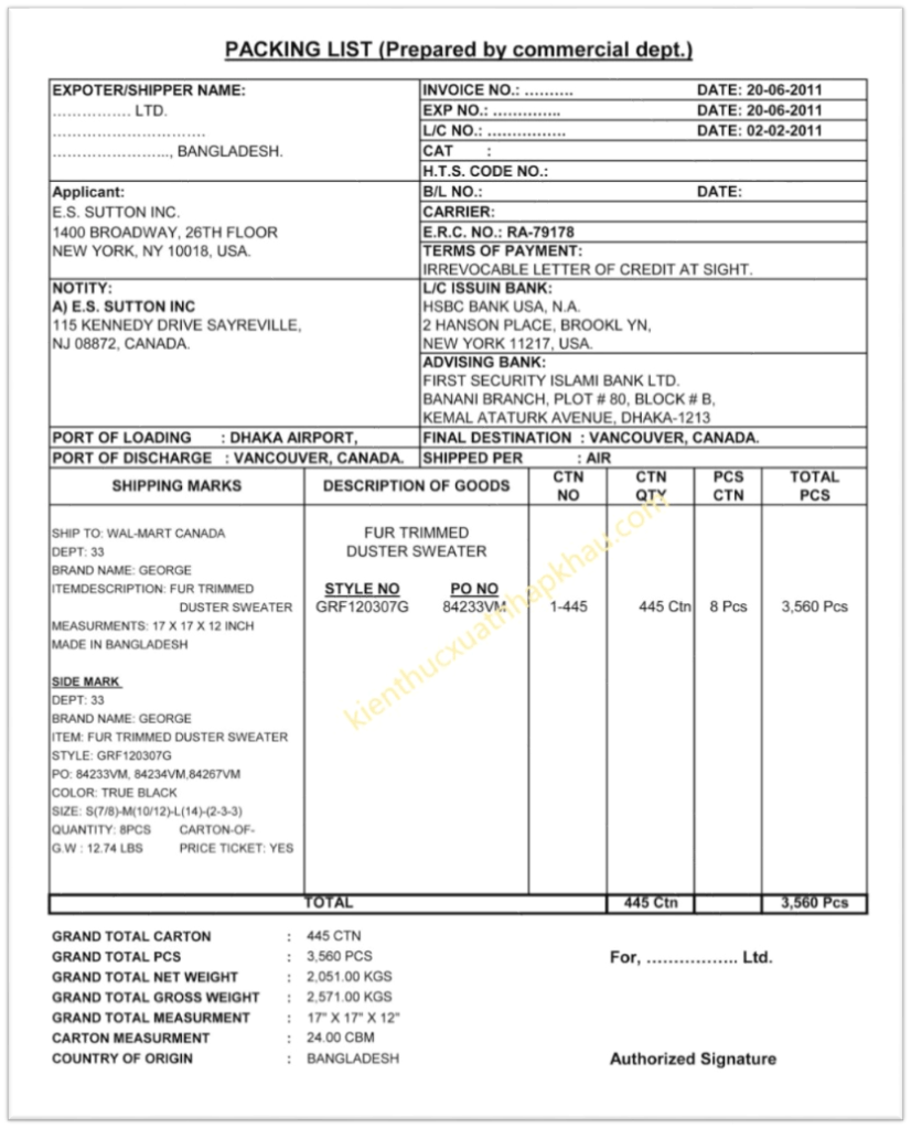 Packing List còn gọi là Phiếu đóng gói chi tiết hàng hóa, mô tả chi tiết và kích thước và trọng lượng của mỗi lô hàng. Do đó, nhờ Packing List, các công ty giao nhận (Forwarder) sẽ biết được cách thức đóng gói hàng hóa sao cho phù hợp.