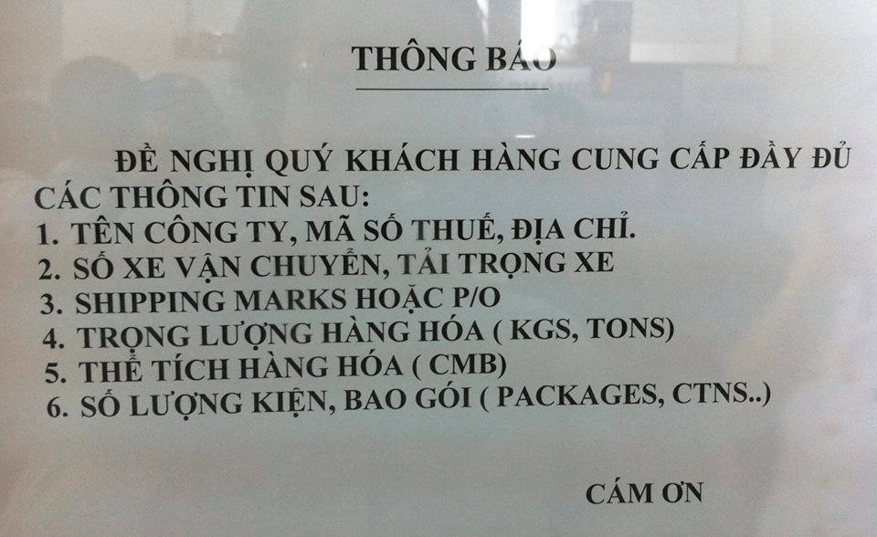 ***Lưu ý: Nếu xe tải lần đầu vào cảng Cát lái thì phải cung cấp Sổ đăng kiểm để thương vụ nhập máy.