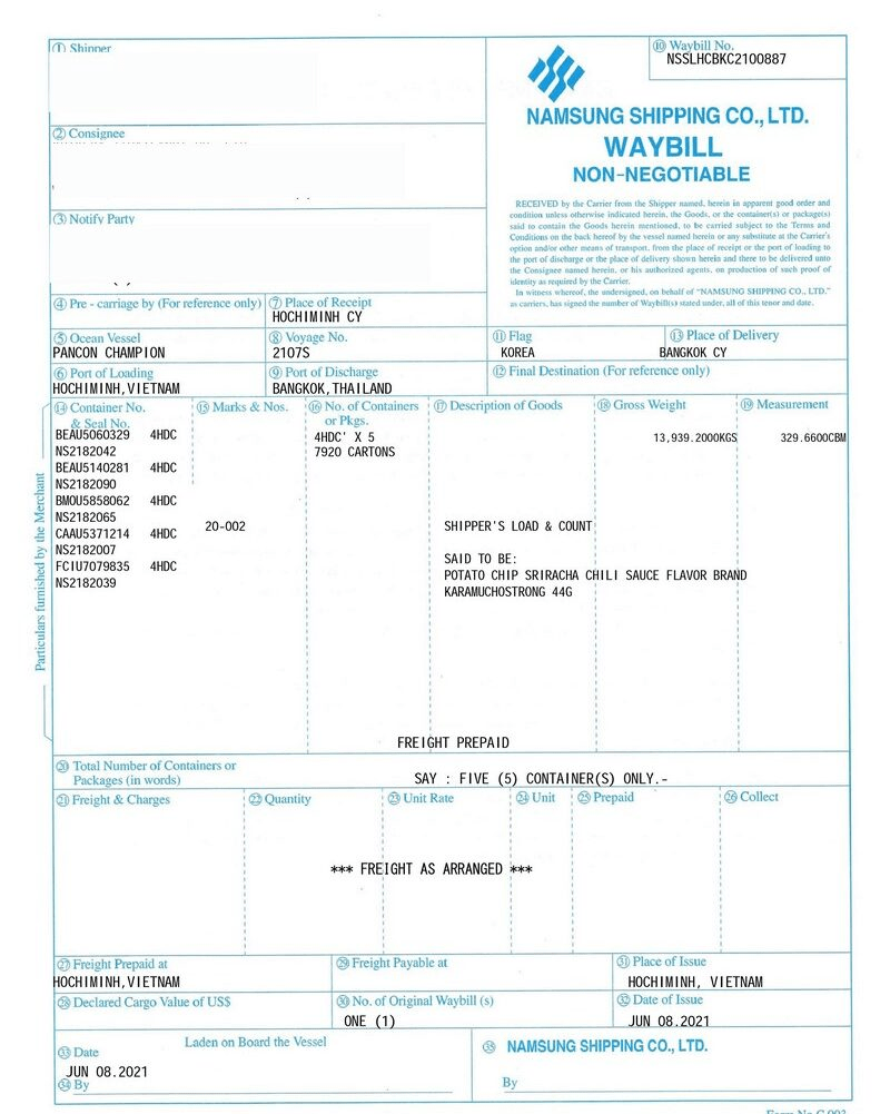 Sử dụng Seaway Bill sẽ là thỏa thuận cho người mua và người bán với nhau