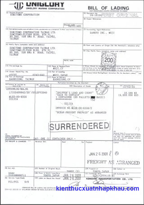 Bước 5: Shipper gửi Surrendered Bill cho Consignee bằng bản scan (Vậy nên Surrendered B/L là một vận đơn không chuyển nhượng được). Bộ Surrendered Bill chỉ khác Bill gốc ở chỗ có thêm con dấu có chữ SURRENDERED (đóng dấu đầy đủ lên B/L gốc hoặc B/L Copy hoặc B/L Draft)