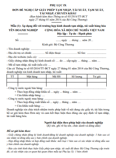 Lưu ý, tùy từng mặt hàng, thông tin đề cập trên mẫu công văn xin tạm nhập tái xuất có thể điều chỉnh cho phù hợp.