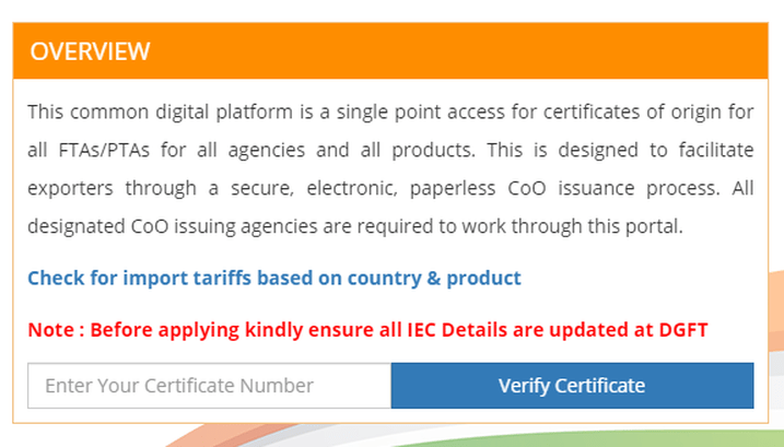 Kiểm tra thông tin về C/O tại trang thông tin điện tử: http://Coo.dgft.gov.in -> đánh số tham chiếu C/O vào ô “verife certinficate” để tra cứu thông tin.