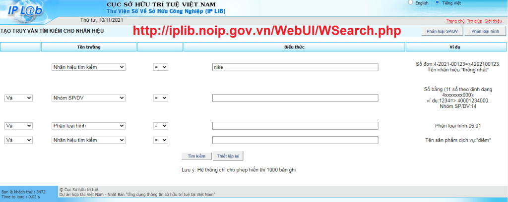 Tra cứu nhãn hiệu đang được bảo hộ tại Việt Nam tại Thư viện số về sở hữu công nghiệp của Cục Sở hữu trí tuệ (The Industrial Property Digital Library (IP-Lib) of The National Office of Intellectual Property of Vietnam).