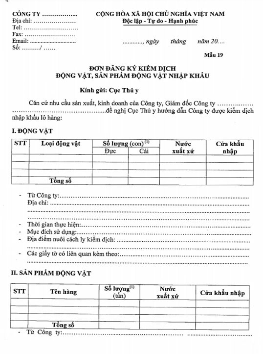- Đơn đăng ký Xin giấy phép kiểm dịch