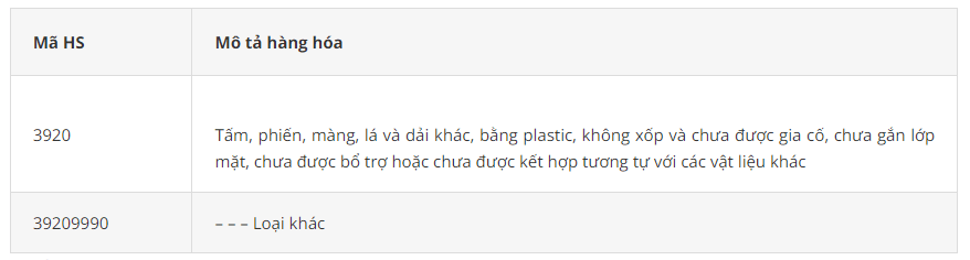 - Đối với mặt hàng là tấm nhựa: Thuế VAT là 10%, thuế suất thuế nhập khẩu ưu đãi là 6%.