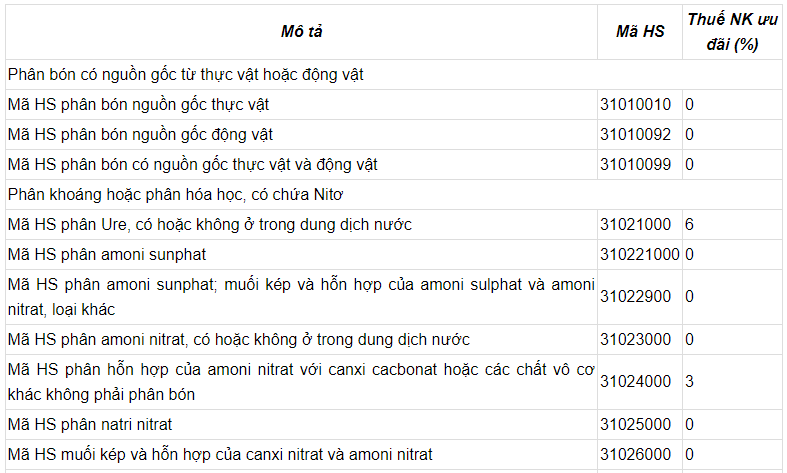 Dưới đây là một số mã HS các loại phân bón phổ biến mà quý khách hàng nên tham khảo