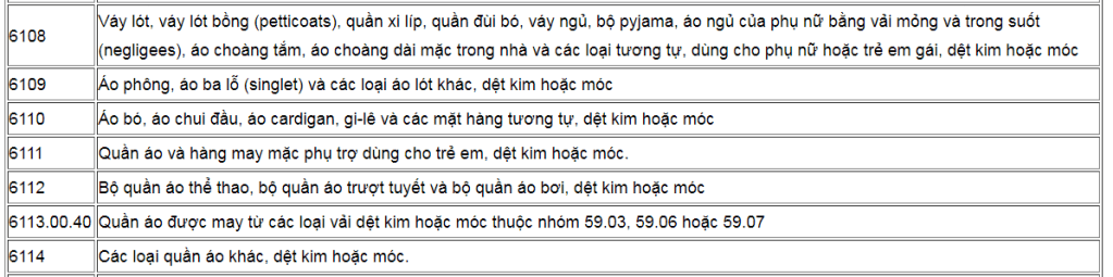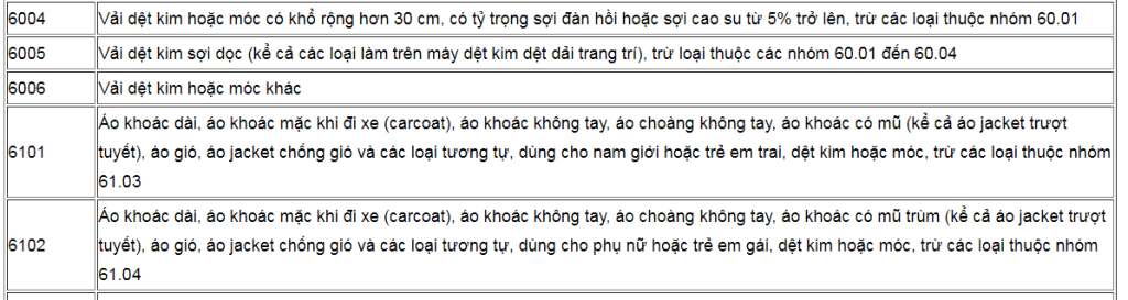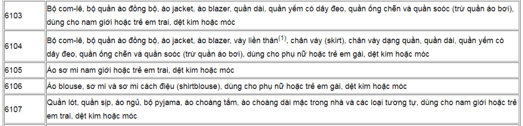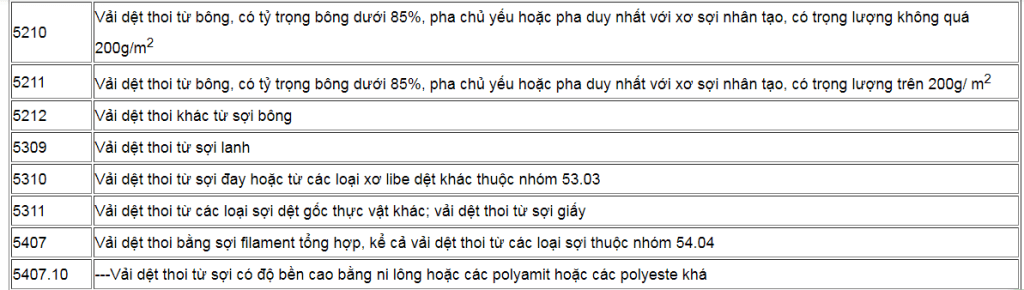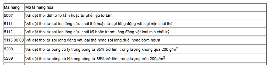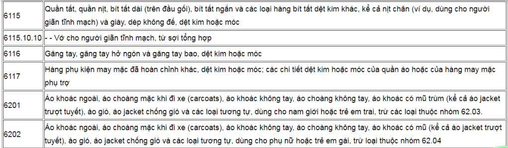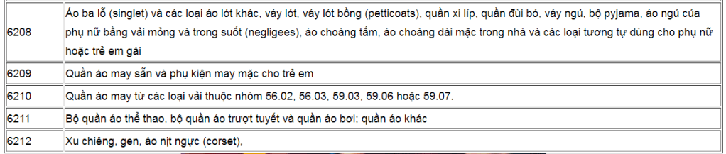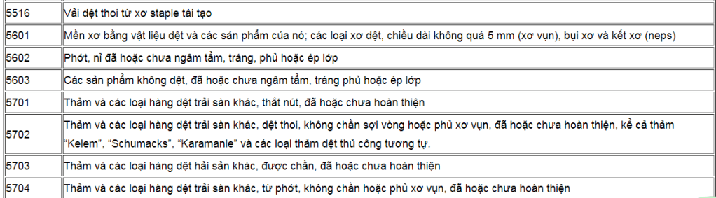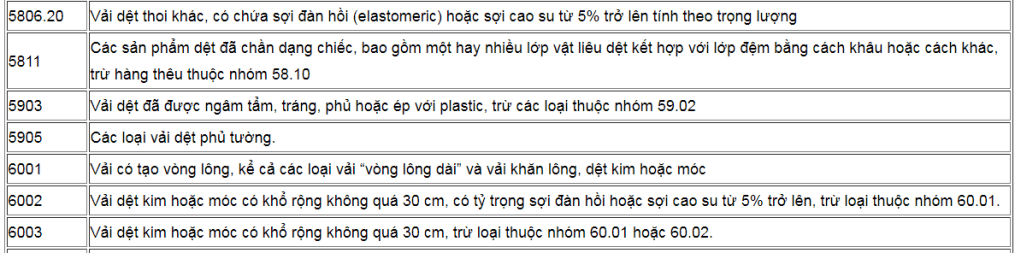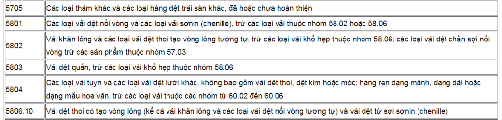 Trừ mã hàng 9619: “Băng (miếng) và nút bông vệ sinh (tampons), khăn và tã lót cho trẻ và các vật phẩm tương tự, bằng mọi vật liệu” – vì đã được bãi bõ theo thông tư 20/2018/TT-BCT rồi.