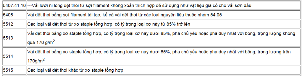 - Công nghệ dệt: (dệt thoi, dệt kim, hay không dệt…)