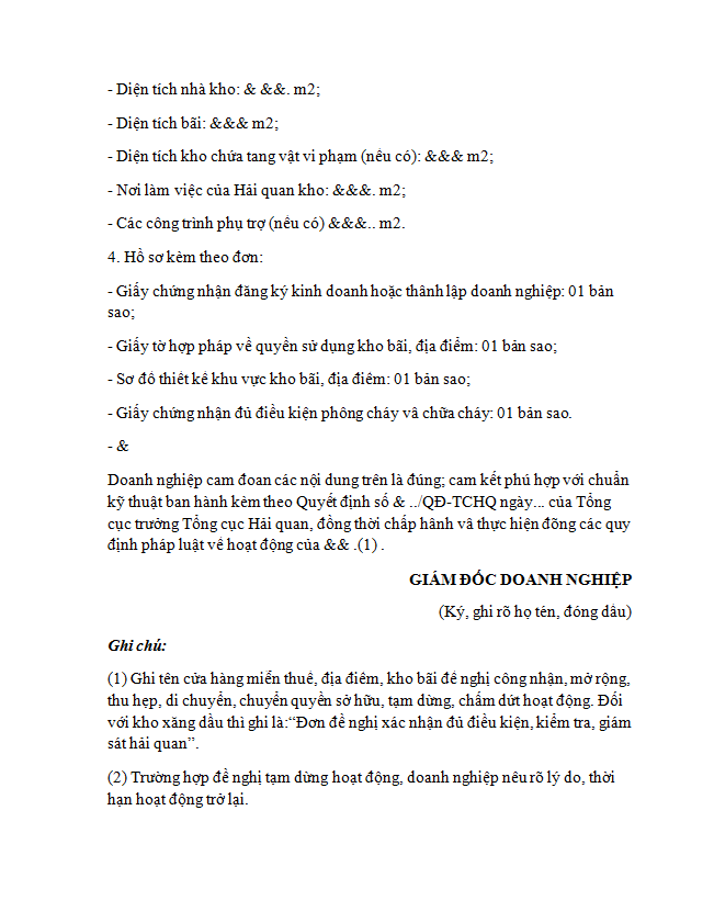 Doanh nghiệp nộp đơn đề nghị tạm dừng, chấm dứt hoạt động trực tiếp tại Cục Hải quan tỉnh, thành phố, tại nơi diễn ra hoạt động.