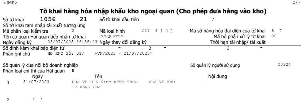 Lưu ý khi khai báo VNACCS đối với TKHQ NHẬP khẩu hàng từ KNQ giao hàng vào nội địa: