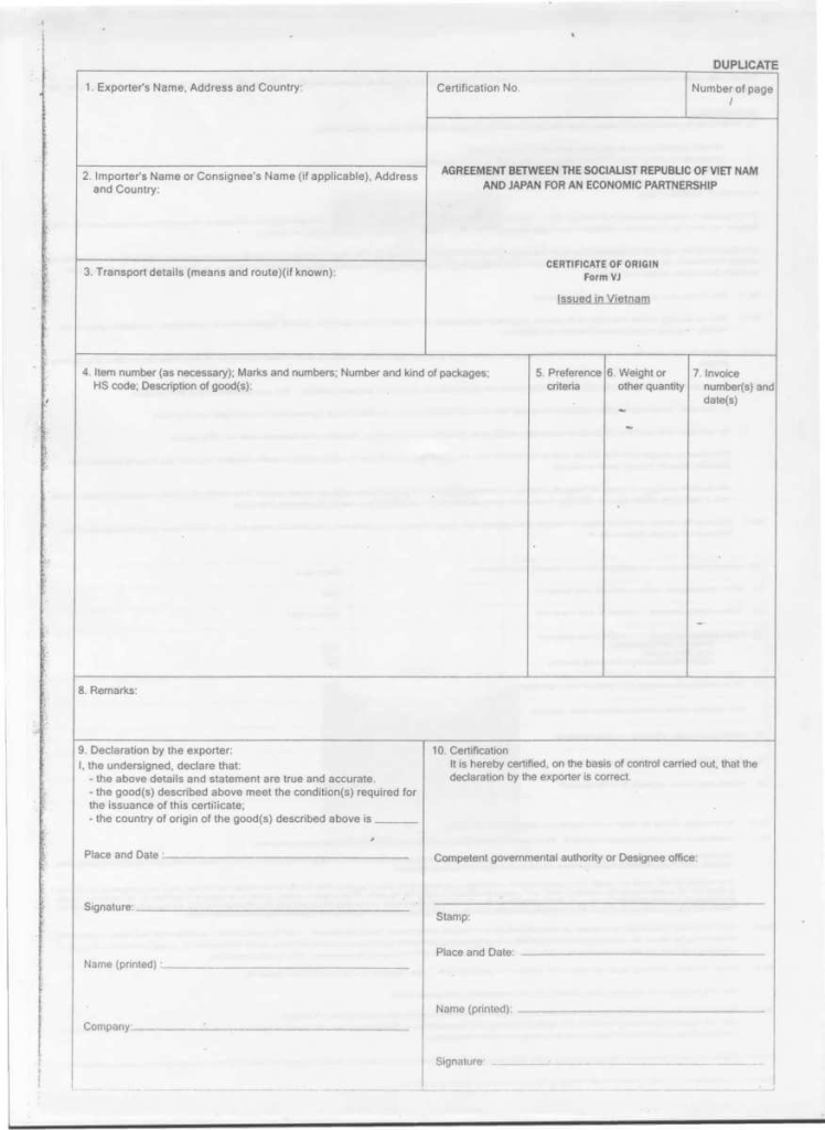 Trong nhiều năm trở lại đây, hàng hóa xuất nhập khẩu giữa Việt Nam và Nhật Bản phát triển mạnh, gặp nhiều thuận lợi. Điều đó có được là triển khai thực hiện Giấy chứng nhận xuất xứ, CO form VJ, giúp hàng hóa giao thương giữa 2 nước được giảm thuế suất nhập khẩu, giúp doanh nghiệp giảm giá thành, gia tăng lợi nhuận.