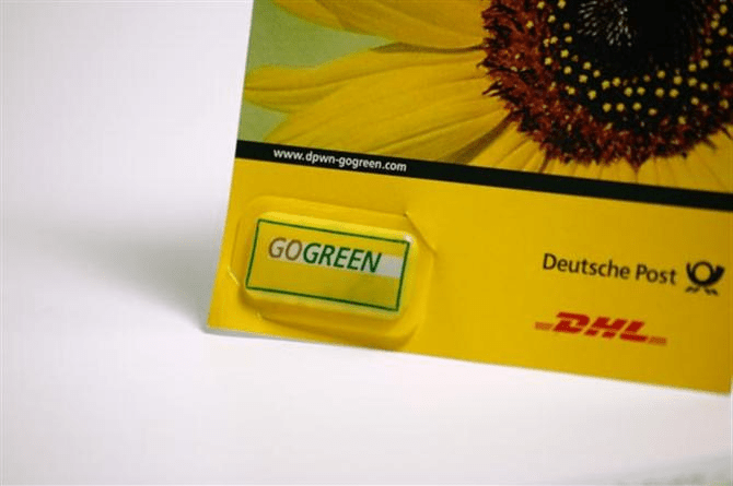 Công ty DHL với trụ sở chính ở Đức, một trong những DN hàng đầu của ngành logistics, cũng tham gia vào phong trào logistics xanh này. Với dịch vụ Go Green, công ty cung cấp một tùy chọn cho việc vận tải. Lượng khí CO thải ra từ quá trình vận chuyển sẽ được đền bù bằng các dự án bảo vệ khí hậu như dự án xây dựng một nhà máy phong điện ở Phật Sơn, Trung Quốc. Những đối tác lựa chọn dịch vụ này sẽ có giấy chứng nhận Go Green được gắn trên các lô hàng của họ.
