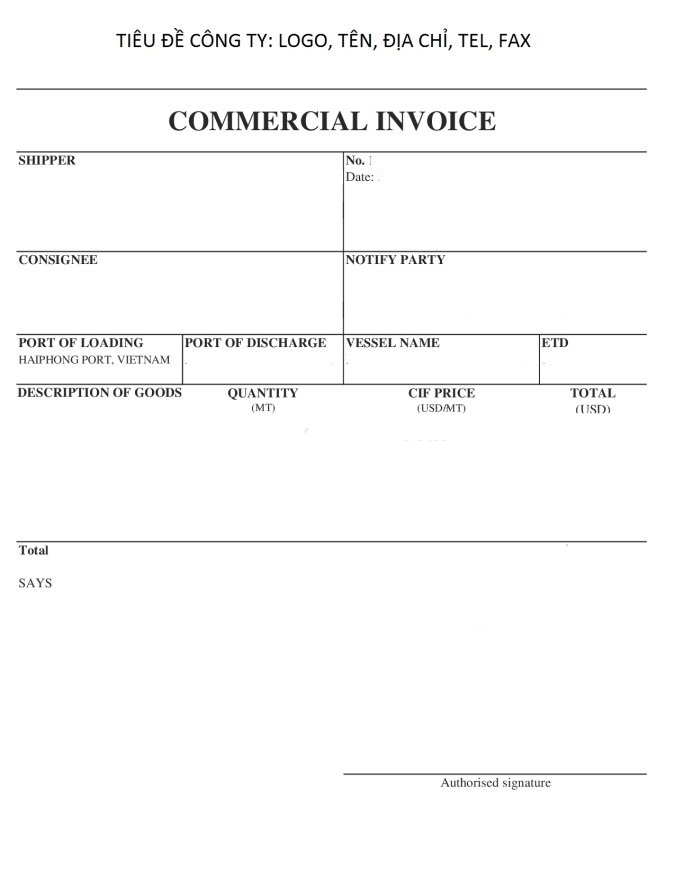 - INVOICE: Hóa đơn – như cái tên của nó đây sẽ là chứng thư mà người mua dựa trên đó để thanh toán cho người bán trên hóa đơn sẽ thể hiện: giá của từng cái áo cái quần, giá của tổng lô hàng, phương thức thanh toán là gì, giá theo điều kiện incoterms.
